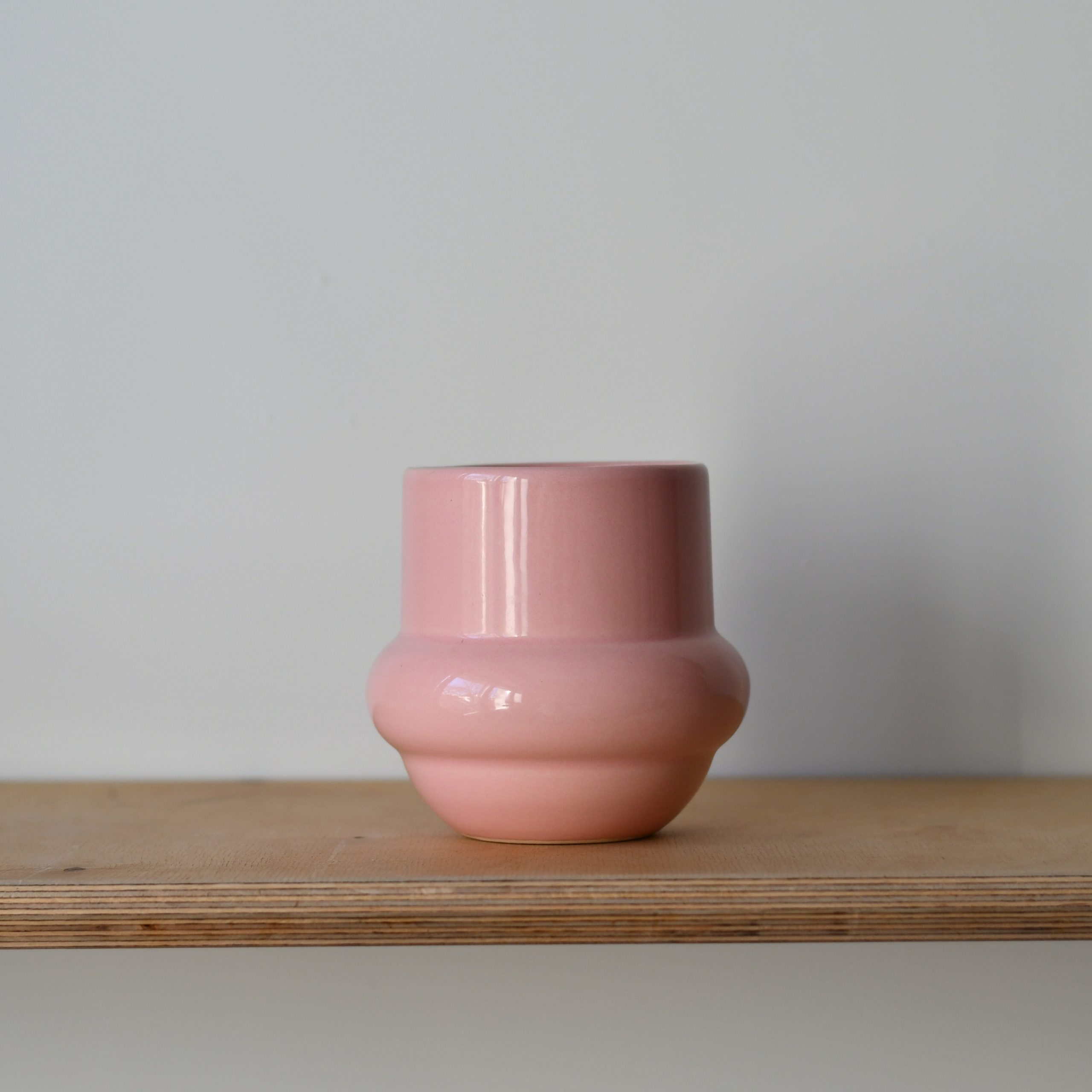 Kubek ceramiczny różowy. Kubki mają szkliwione spody.