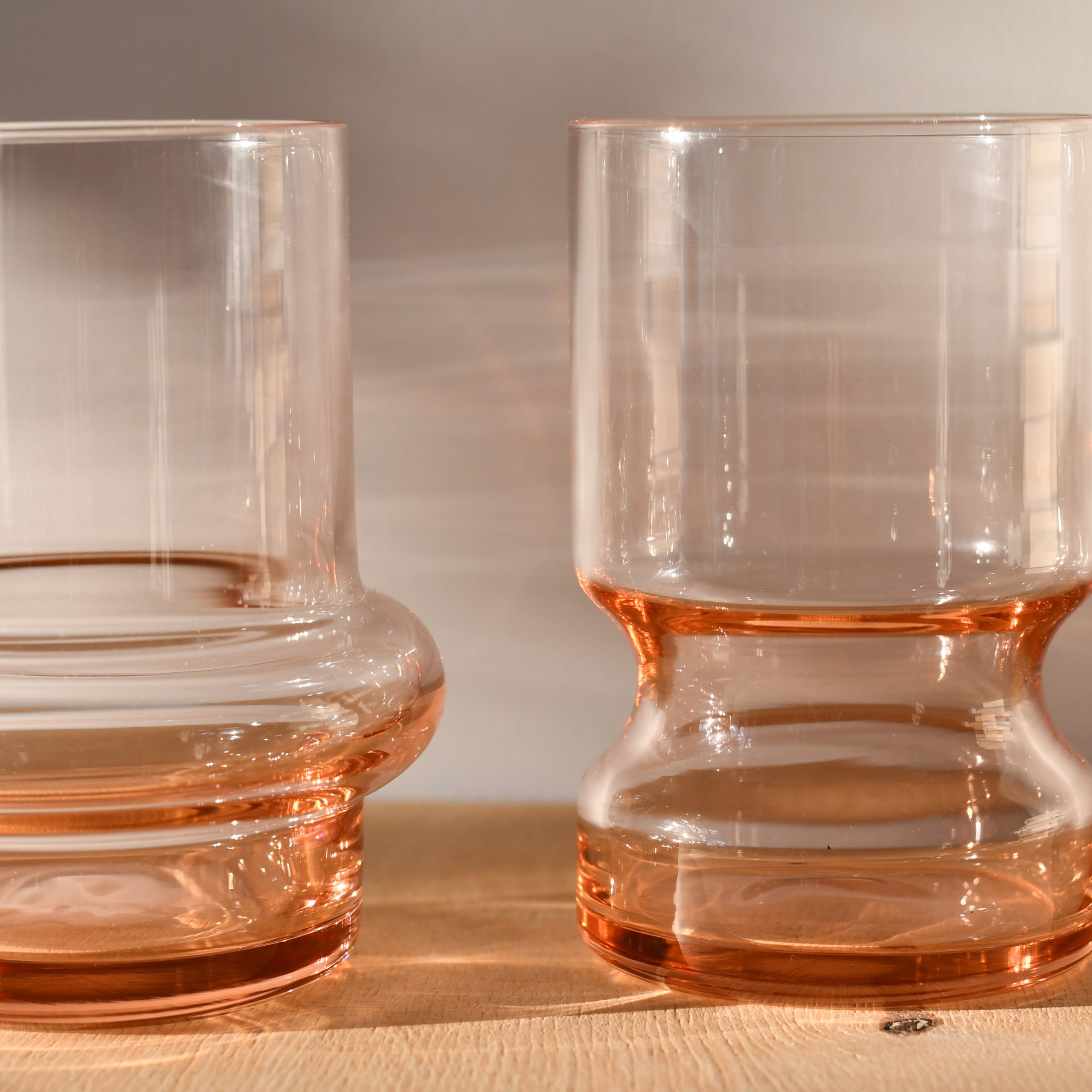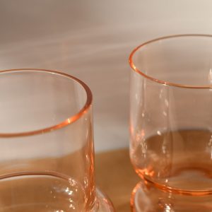 Para szklanek w kolorze jasny róż. UWAGA! Szklanki polecamy do letnich i zimnych napojów.
