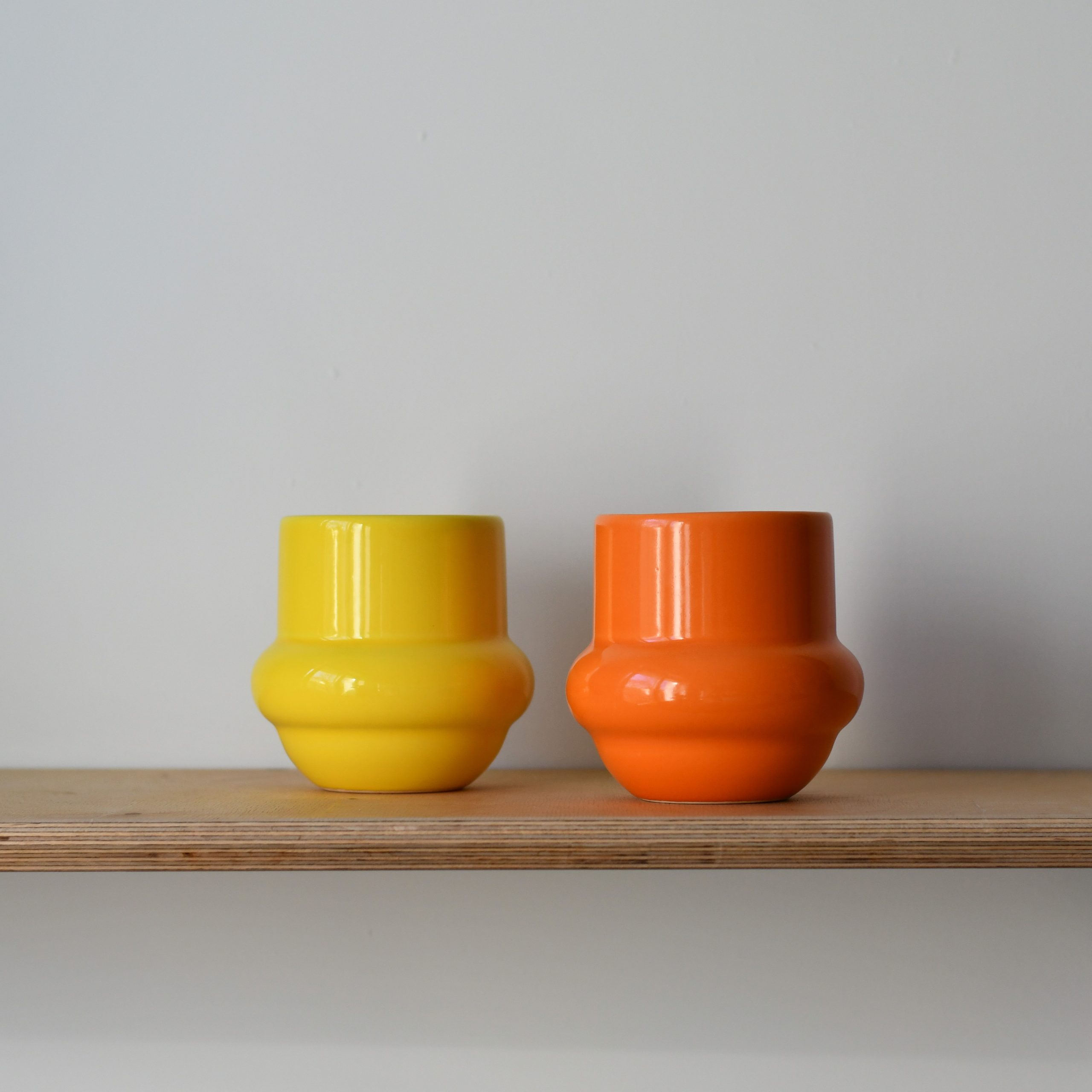 Zestaw dwóch kubków BRZUSZKÓW . Produkty mają szkliwione spody.