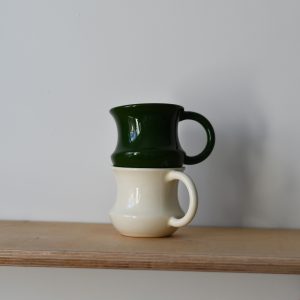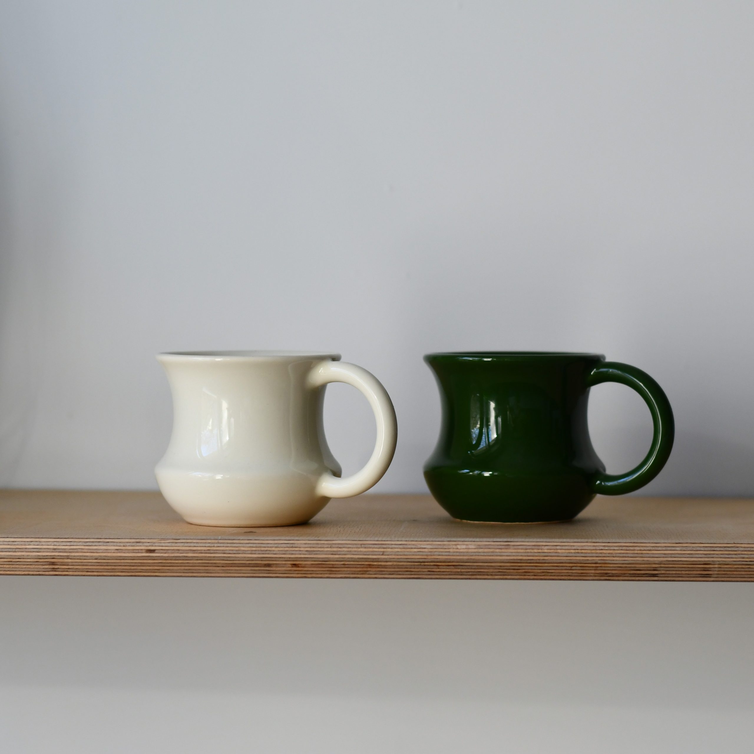 Zestaw dwóch filiżanek do herbaty lub cappucino. Filiżanki mają szkliwione spody.