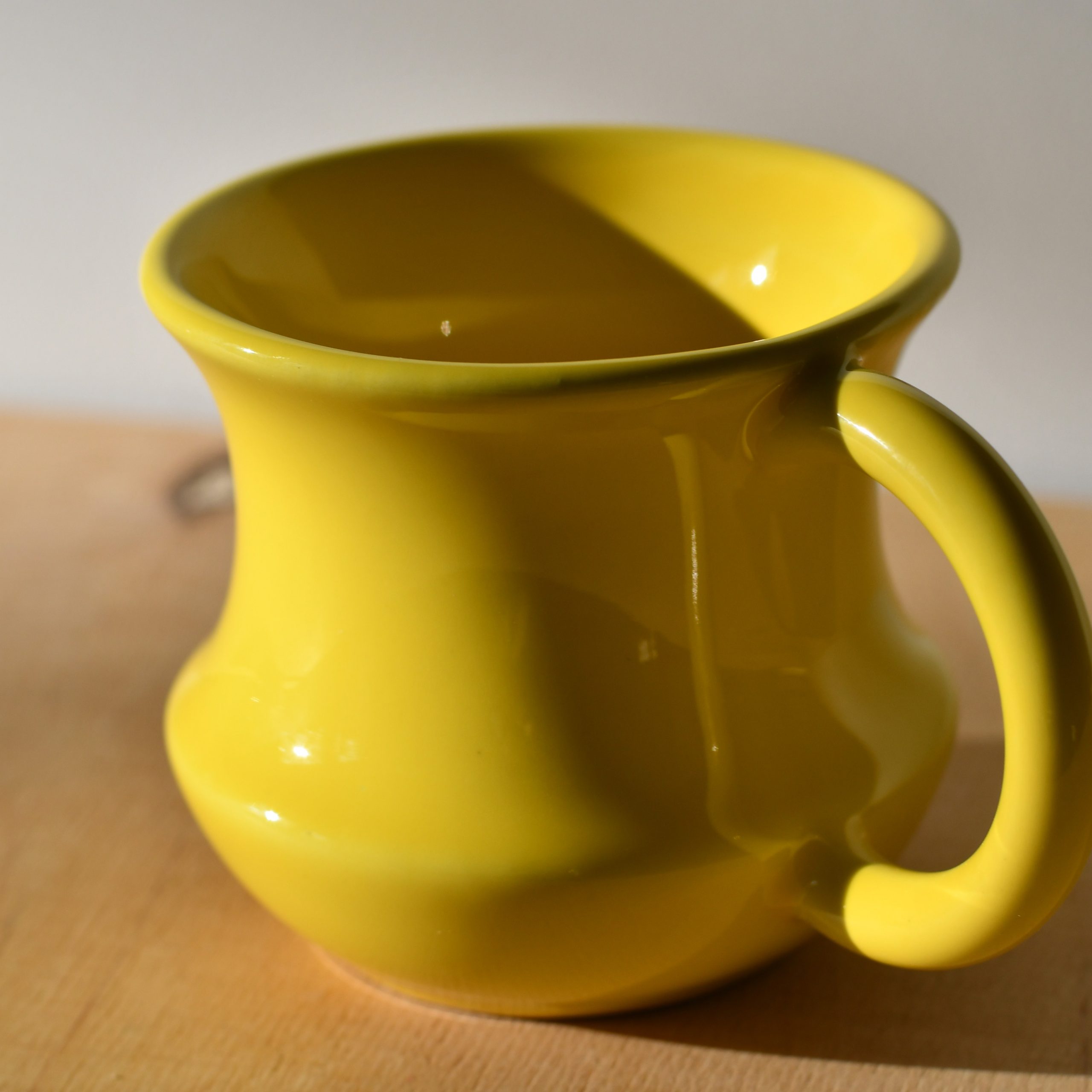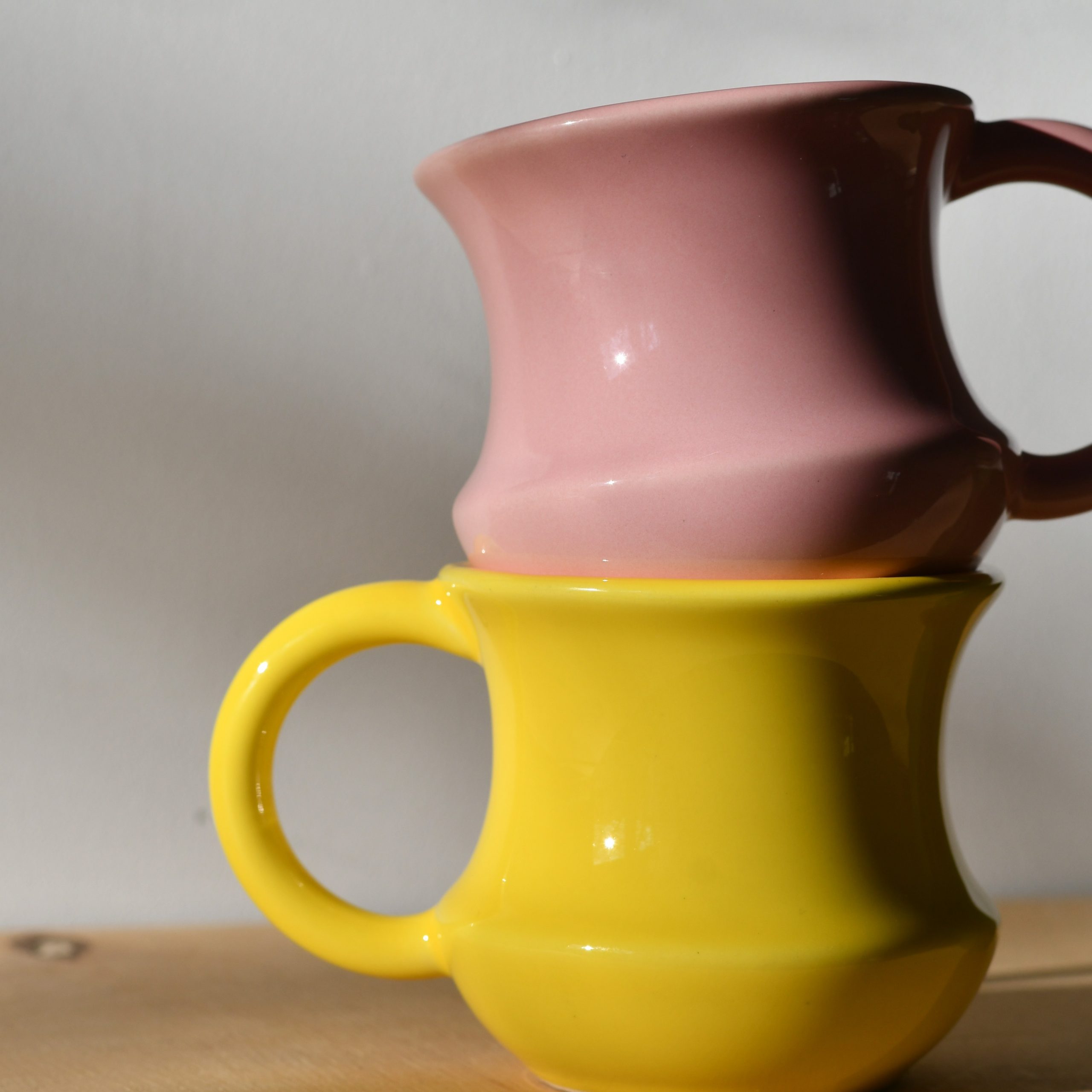 Zestaw dwóch filiżanek do herbaty lub cappucino. Filiżanki mają szkliwione spody.